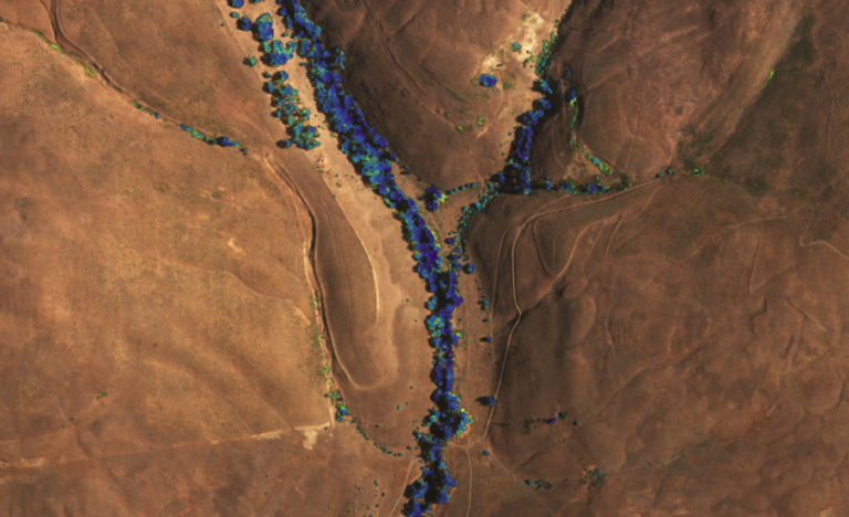 Mapeo de áreas grandes para monitoreo ambiental. Este mapa NDRE fue construido para identificar diferentes especies de plantas, cortesía de Micasense